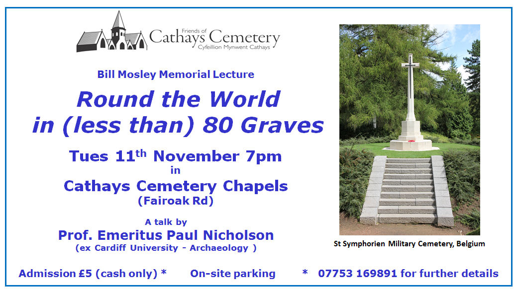 | Tuesday | November 11th | 7 pm Annual Lecture - Bill Mosley Memorial - Prof Paul Nicholson - Round the World in (less than) 80 Graves { £5 Entry charge - Cash Only} |