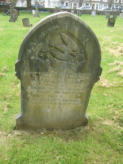 | R3880 | Private | Driscoll | In Loving Memory of FLURENCE, beloved husband of Elizabeth DRISCOLL, died 7 September 1914, aged 40. Also their beloved sons TIMOTHY, died 7 January 1915, aged 5. MICHAEL, who was killed in Action 16 August 1916, aged 20. RIP. Also ELIZABETH DRISCOLL, died 3 February 1926, aged 49 years. RIP. | 1914 |