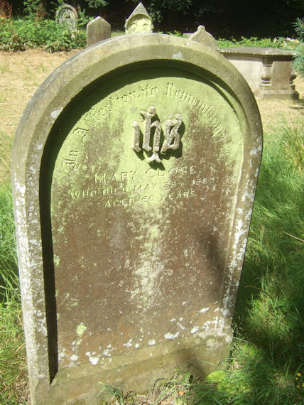 | A131 | Private | Close | In Affectionate Remembrance of MARY CLOSE who died 28 May 1883 aged 60 years. | 1883 |