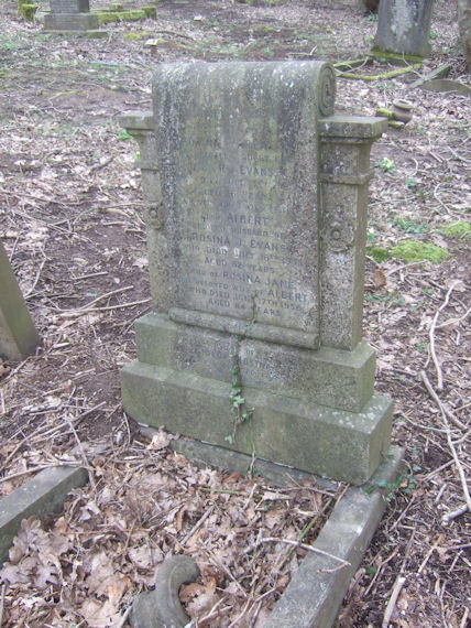 | A183 | Private | Evans | In Loving Memory of ROSINA BARBARA a beloved daughter of A J & R J EVANS who died 11 October 1927 aged 16 years. A loved and loving child. Also ALBERT beloved husband of ROSINA J EVANS who died 16 July 1931, aged 62 years. And of ROSINA JANE the beloved wife of Albert who died 17 June 1956 aged 84 years. Also of HILDA ROSINA their beloved child died in infancy. | 1927 |