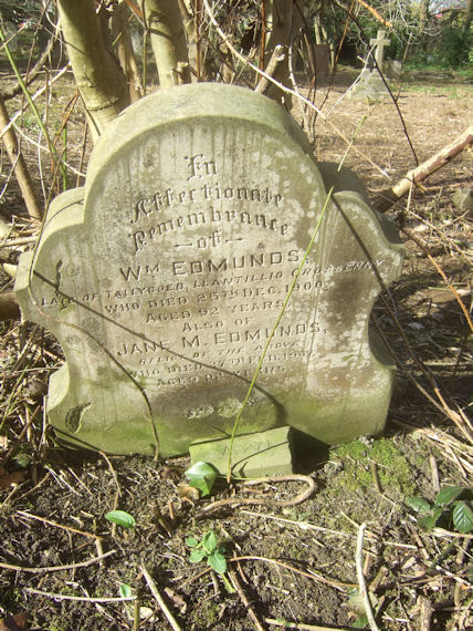 | A271 | Private | Edmunds | WILLIAM EDMUNDS, late of Tallycoed, Llantillio Crossenny, died 25 December 1900 age 92. JANE M EDMUNDS, his widow, died 27 February 1907 age 92. | 1900 |