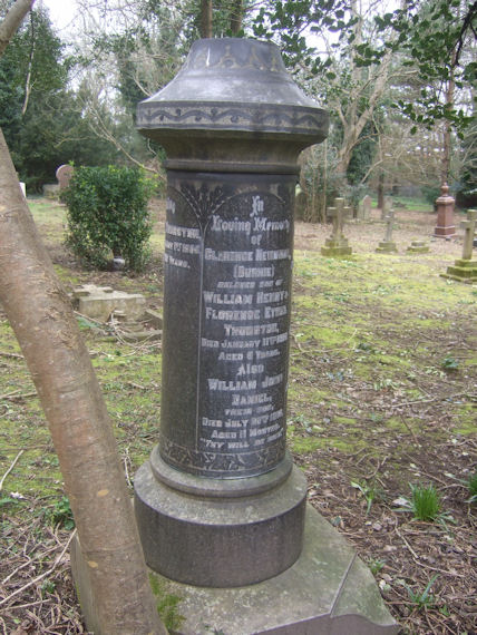| A1482 | Private | Thurston | In Loving Memory of CLARENCE NEWBURN - BURNIE - beloved son of William Henry & Florence Ethel THURSTON, died 11 January 1916 aged 5 years. Also WILLIAM JOHN DANIEL, their son, died 20 July 1906 aged 11 months. Thy Will be Done. Also LOUISA ANN THURSTON, died 22 October 1910 aged 65 years. Also of HAROLD beloved husband of Louie GIBBS, nee THURSTON Killed at Dunkirk May 1940, aged 29. Also DANIEL THURSTON, died 1 February 1905 aged 68 years. | 1916 |