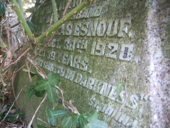 | I41g | Private | Esnouf | In Loving Memory of my dear husband CYRIL DOUGLAS ESNOUF who died 30 October 1928 aged 39 years. a light shines in the darkness. | 1928 |