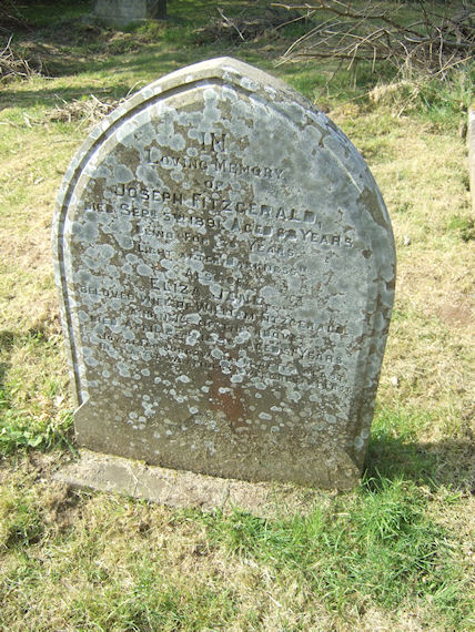 | I494 | Private | Fitzgerald | In Loving Memory of JOSEPH FITZGERALD, died 5 September 1891 aged 68 years. Blind for 36 years. Light after darkness. Also of ELIZA JANE, beloved wife of William FITZGERALD, and niece of the above, died 23 April 1896 aged 51 years. Joy after sorrow, calm after blast, best after weariness. At rest at last. | 1896 |