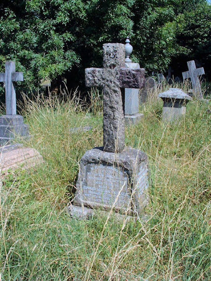 | L1238 | Private | Thomas | JAMES VINSON THOMAS, died 18 July 1885 age 50. ELIZABETH, his wife, died 12 May 1884 age 43. Their children - LILIAN MARY died 18 March 1869 age 3 days. HERBERT WENTWORTH, died 16 October 1880 age 1 year. GEORGE TREVOR, died at Cameroun, West Africa, 21 September 1895 in his 21st year. | 1869 |