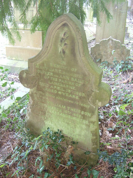 | L1247 | Private | Hindmarch | JANE HINDMARCH, died 13 June 1897 age 63. ANNIE, daughter of J W & Isabella WAILES, born 4 March 1879. accidentally drowned 1 July 1882. THOMAS WALTER WAILES, husband of Isabella Wailes, born 14 April 1846, died 3 January 1930. | 1882 |