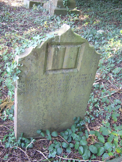 | L1190 | Private | Taylor | WILLIAM TAYLOR MD of Silverton, Llandaff, died 8 May 1912 in his 83rd year on board the S.Y,Vectis at Gravosa, buried at sea off the Island of Lissa in the Adriatic. SARAH ANN, 48 years wife of William TAYLOR MD, Silverton, Llandaff, born 3 May 1832, died 18 June 1906. ARTHUR EARNEST, their son, died September 1861 age 3 weeks. | 1861 |