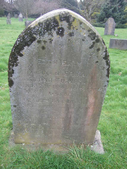 | T692 | Private | Turner | EDITH EMILY, daughter of Ephraim & Ann TURNER, died 28 November 1884 age 14 months. ELIZABETH BARBER, sister of Ann Turner, died 1893 age 53, EDWARD, brother of Ephraim TURNER, died 18 October 1914 age 81. | 1884 |