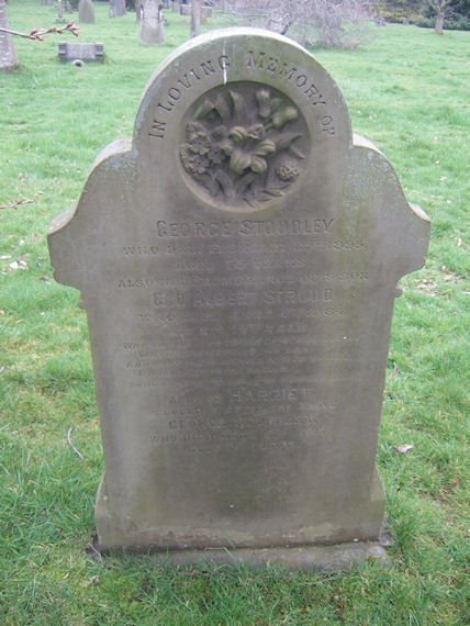 | T938 | Private | Stoodley | In Loving Memory of GEORGE STOODLEY, who died 25 February 1895, aged 73 years. Also in Remembrance of his son GAD ALBERT STROUD, who died 6 June 1884, in his 14th year. Why should our tears of sorrow flow, when God recalls his own and sad then leave a world of woe. for an immortal ground, though lost to sight to memory dear. Also of HARRIET, beloved wife of the above GEORGE STOODLEY, who died 6 June 1917 aged 90 years. | 1884 |