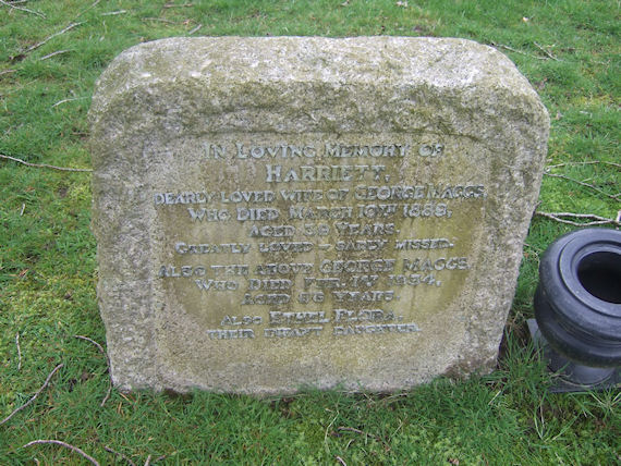 | T972 | Private | Maggs | In Loving Memory of HARRIETT, dearly loved wife of George MAGGS, who died 10 March 1889, aged 39 years. Greatly loved - sadly missed. Also the above GEORGE MAGGS, who died 1 February 1934, aged 86 yers. Also ETHEL FLORA, their dearest daughter. | 1884 |