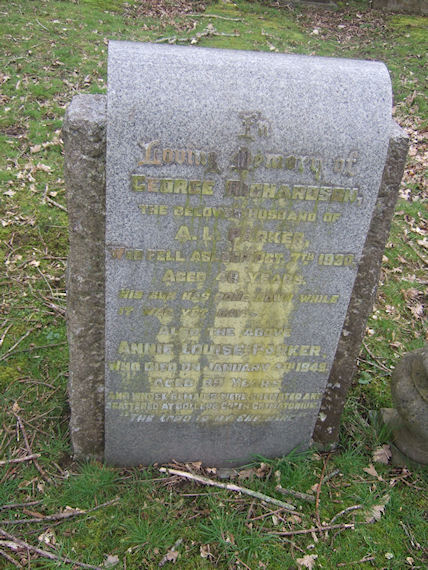 | W114 | Private | McGillivray | In Loving Memory of JOHN McGILLIVRAY who died 18 October 1926, aged 67 years. Also JANET his beloved wife, who died 3 November 1900, aged 42 years. Also their loved sons Pte ALEXANDER McGILLIVRAY Grenedier Guards killed in Action in Flanders 29 October 1914, aged 30 years. Sergt ALLAN McGILLIVRAY 2nd Cameron Highlanders, killed in Action at St Eloi 19 February 1915, aged 26 years. Also HANNAH PELLA and JAMES their infant children. Thy Will Be Done. | 1926 |