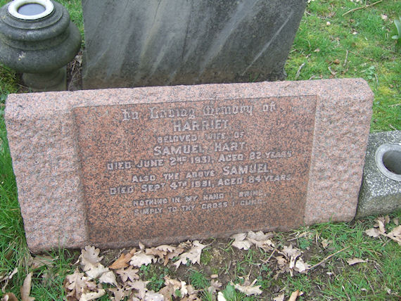 | W293 | Private | Hart | In Loving Memory of HARRIET beloved wife of Samuel HART, died 2 June 1931 aged 84 years. Nothing in my hands I bring, simply to thy cross I cling. | 1931 |
