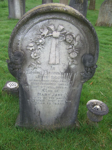 | W740 /W761 | Private | Scott | In Loving Remembrance of JOHN SCOTT of Richmond Road, Cardiff who departed this life 9 February 1892 aged 45 years. Also of MARY JANE, wife of the above, who died 9 July 1916 aged 75 years | 1892 |