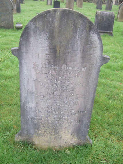 | W629 | Private | Moore | In Loving Memory of JAMES WRIGHT MOORE born 18 December 1818, died 12 November 1891. I know that my redeemer liveth. Also of ANN the beloved wife of the above, born 13 April 1826, died 6 March 1898. We shall go to her but she will not return to us. Also ANNIE LYDIA FLETCHER, daughter of the above, died 6 May 1938 aged 82 years. At rest. | 1891 |