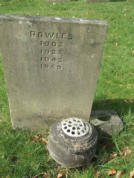 | Y180 | Removed | Rowles | In loving memory of Arthur Rowles died 2nd Feb. 1943 aged 74. Elizabeth Ann Rowles died 6th January 1959 aged 85. Lily Colenso Rowles died 2nd August 1902. Arthur George Rowles died 27th June 1923. "Forever with the Lord". | 1902 |