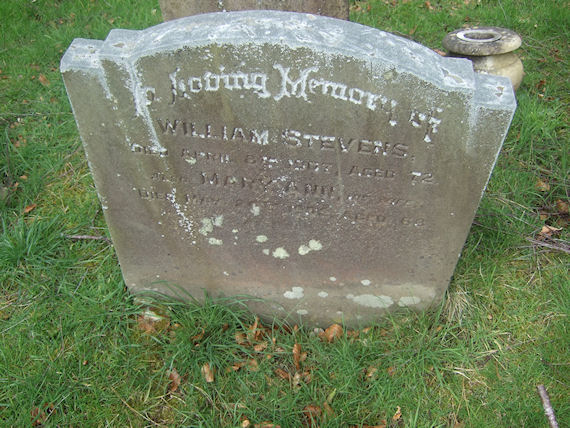 | Y233 | Private | Stevens | In Loving Memory of WILLAIM STEVENS died 8 April 1907, aged 72. Also MARY ANN, his wife, died 24 May 1902, aged 68. | 1902 |