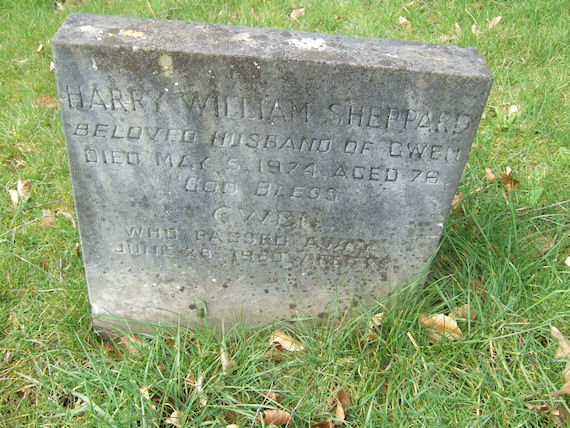 | Y235 | Private | Sheppard | HARRY WILLIAM SHEPPARD, beloved husband of Gwen, died 5 May 1974 aged 76. God Bless. Gwen, who passed away 28 June 1980, aged 71. | 1974 |