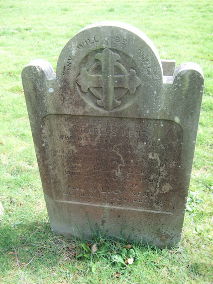 | Y297 | Private | Kent | In Loving Memory of CHARLES KENT, who died 24 February 1902, aged 48 years. Oh, Glorius hope immortal life what bliss thy spheres enfold. Also of NELLIE CLARKE, who died 22 May 1906, aged 13 years. Also of LUCY KENT, died 1 November 1924, aged 68. Peace, Perfect Peace. | 1902 |