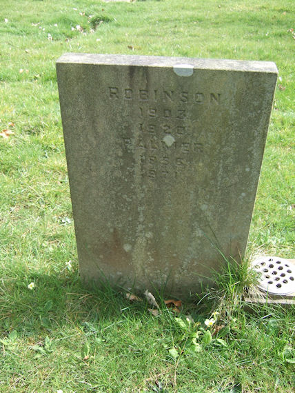| Y380 | Removed | Robinson | [ROBINSON 1903 1920] In loving memory of LAURA beloved wife of David E. PALMER died Feb. 26th 1956 aged 84. Also of DAVID EDWIN PALMER died August 26th 1971 aged 97. | 1903 |
