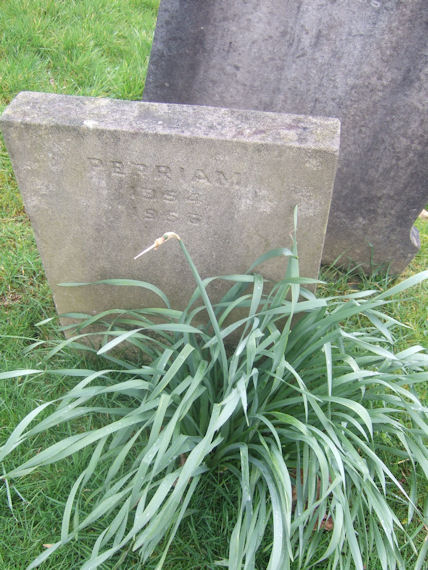 | Y377 | Removed | Perriam | In loving memory of FREDERICK the beloved husband of Mary Jane PERRIAM who died Feb. 13th 1909 aged 49 years. The Lord is my shepherd, I shall not want. Also of the above MARY JANE who died April 22nd 1939 aged 78 years. "At Rest" Also ARTHUR JOHN beloved husband of Florence SKINNER who died 26th Jan. 1963 aged 76. And of his beloved wife, FLORENCE MARY, died on the 14th February 1966 aged 80. "Re-united" | 1902 |