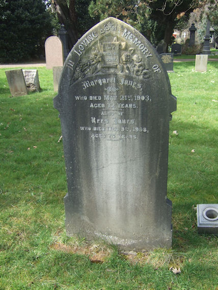 | Y503 | Private | Jones | In Loving memory of MARGARET JONES, who died 21 May 1903, aged 72 years. Also of REES JONES, who died 9 December 1908, aged 75 years. | 1903 |