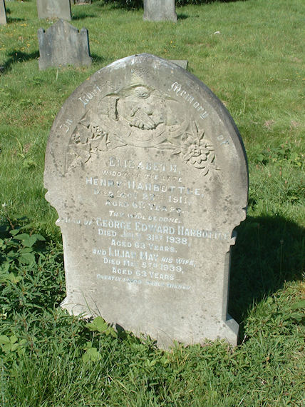 | Y749 | Private | Harbottle | In Loving Memory of ELIZABETH widow of the late Henry HARBOTTLE, died 27 December 1911, aged 65 years. Thy will be Done. Also of GEORGE EDWARD HARBOTTLE died 31 July 1938, aged 63 years. Greatly loved sadly missed. | 19211 |