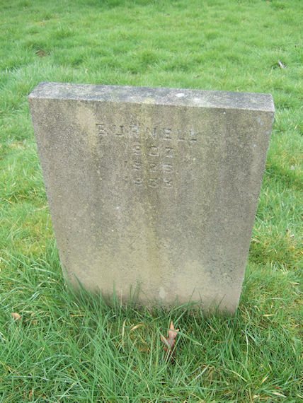 | Y768 | Removed | Burnell | In loving memory of JOHN the beloved son of John and Elizabeth BURNELL who departed this life March 2nd 1907 aged 17 years. "In the midst of life we are in death". Also of the above JOHN BURNELL who died Nov. 1st 1926 aged 65 years. Also of the aforesaid ELIZABETH BURNELL who died Jan. 15th 1933 aged 71 yrs. Also ERNEST BURNELL who was killed in France April 22nd 1917 aged 20 years. | 1907 |