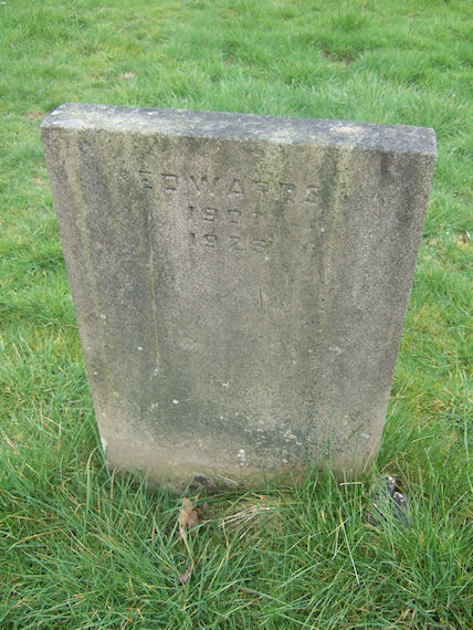 | Y214 | Removed | Edwards | [EDWARDS 1902] In loving memory of WILLIAM ARTHUR beloved husband of ELLEN EDWARDS who died Jan. 21st 1930 aged 71 years. Also of their infant son AUBREY. "He giveth his beloved sleep". Also ELLEN EDWARDS beloved wife of the above died May 15th 1943 aged 85 years. | 1902 |