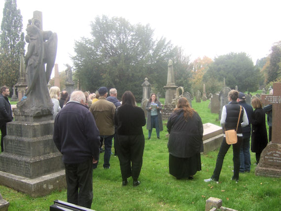 Amanda from Cardiff Bereavement Services led a party of approx 30 around the Heritage Trail in Cathays Cemetery today. The very interesting walk covered Billups, Pettigrew, the Baloon Girl, Tatem amongst many, along with old favourites such as Chiver's Leg. A very pleasant way to spent a cloudy but dry Sunday Morning.