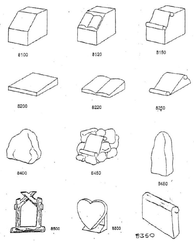 | 7300 Thick, low memorial at head of grave – often originally part of a plot with additional kerbs |